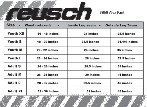 Sizing Reusch Goalkeeper Alex Breezer Pants (Black) Goalkeeper Pants