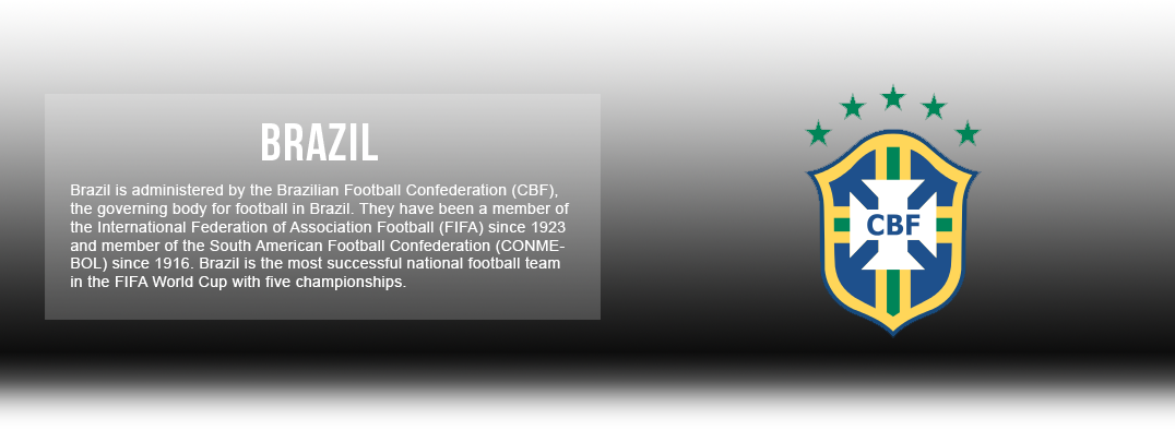 La selección de fútbol de Brasil (Seleção Brasileira de Futebol) ha estado compitiendo contra equipos de todo el mundo durante más de 100 años. Brasil es una de las selecciones nacionales más exitosas en la historia de este deporte. Con cinco campeonatos de la Copa Mundial de la FIFA separados en su haber (1958, 1962, 1970, 1994, 2002), no sorprende que Brasil se clasifique con frecuencia como el equipo nacional número uno del mundo. Brasil ha acalorado las rivalidades con las selecciones nacionales deArgentina,Italia,Uruguayy losPaíses Bajos.