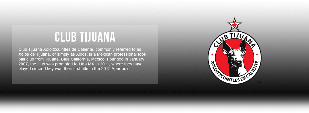 Club Tijuana Xoloitzcuintles de Caliente es un club de fútbol mexicano que juega en la Liga MX, el nivel más alto de fútbol profesional en el país. Comúnmente conocido como Xolos de Tijuana, o Tijuana FC, este equipo juega en Tijuana, Baja California, México. El Club Tijuana fue fundado en enero de 2007 y ascendido a la Liga MX en 2011. Actualmente, el club alberga partidos en el Estadio Caliente, un estadio en Tijuana que puede albergar a 27,000 invitados.