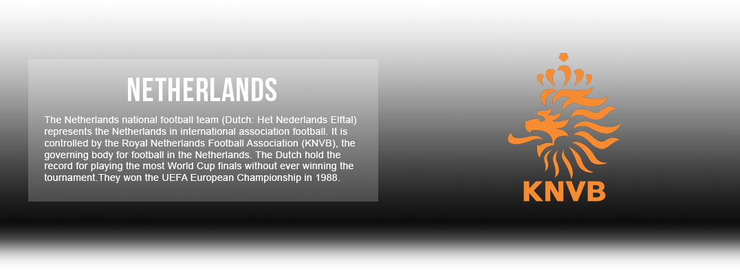 La selección de fútbol de los Países Bajos (Nederlands voetbalelftal) representa a los Países Bajos durante las competiciones internacionales de fútbol. Con más de 100 años de historia, Holanda ha aparecido en casi una docena de Copas Mundiales de la FIFA, llegando a la ronda del campeonato en tres ocasiones distintas. Holanda también tiene 10 apariciones en el Campeonato de Europa, que ganó en 1988. Algunos de los mayores rivales de Holanda sonAlemaniay Bélgica.