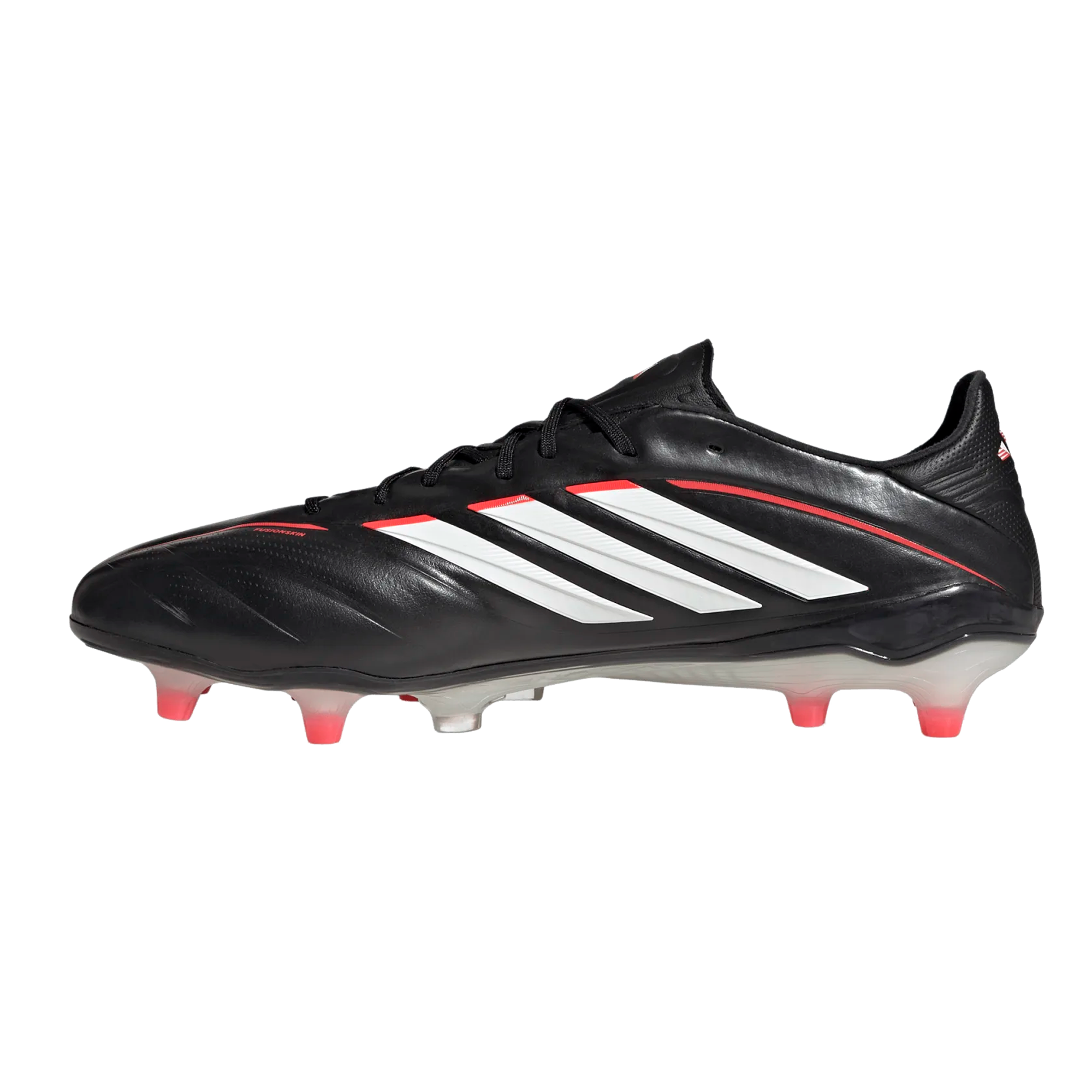The adidas Copa Pure IV Elite FG delivers unmatched touch and control for soccer players seeking precision on firm ground. Its striking Core Black, White, and Lucid Red design combines style with performance, making you stand out on every pitch.