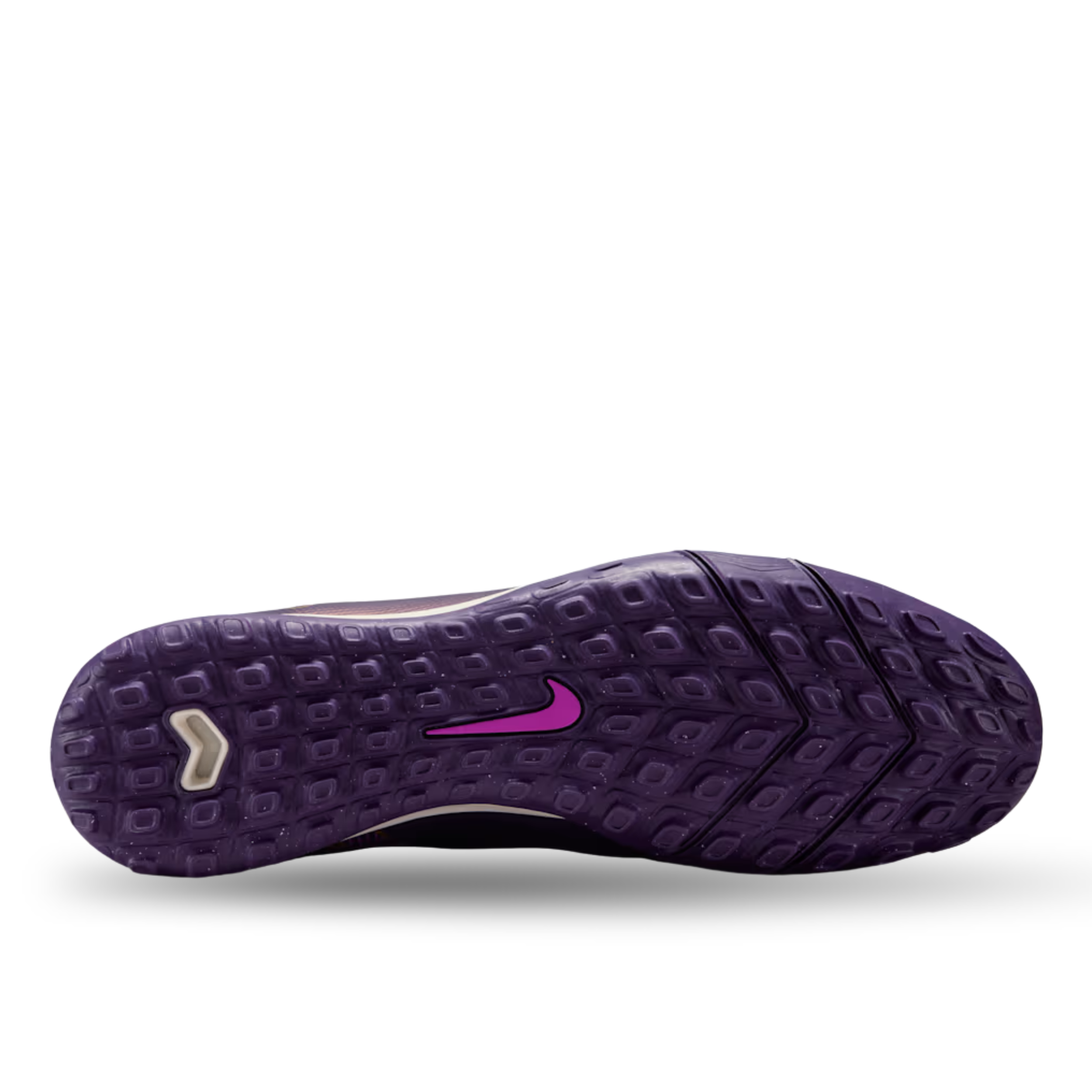Unleash your creativity with the Nike Zoom Superfly 10 Academy KM TF, built for the bold playmaker. This Kylian Mbappé-inspired edition shines in a regal Grand Purple and Pale Ivory colorway, blending elegance with explosive performance. Designed for turf surfaces, it features a Zoom Air unit in the heel for responsive cushioning and a textured upper for precise ball control. The dynamic fit collar ensures a secure, sock-like feel, while the rubber outsole delivers sharp traction for quick cuts and bursts of speed.
