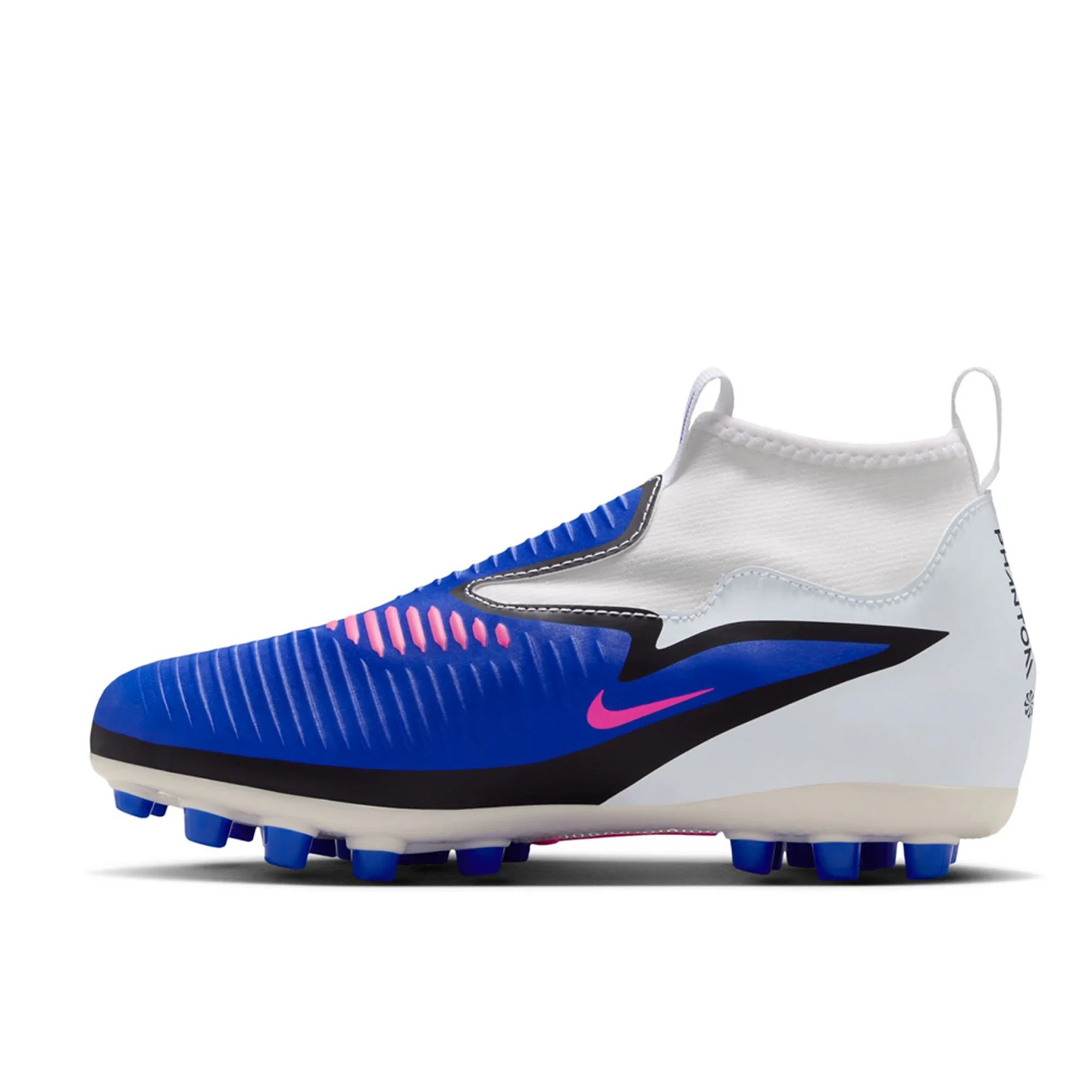 Boost young players’ performance with the Nike Jr Phantom 6 High Academy FG/MG, designed for speed, control, and comfort on firm and multi-ground surfaces. The vibrant Racer Blue, Pink Blast, and White colorway creates a bold, dynamic look for the pitch.