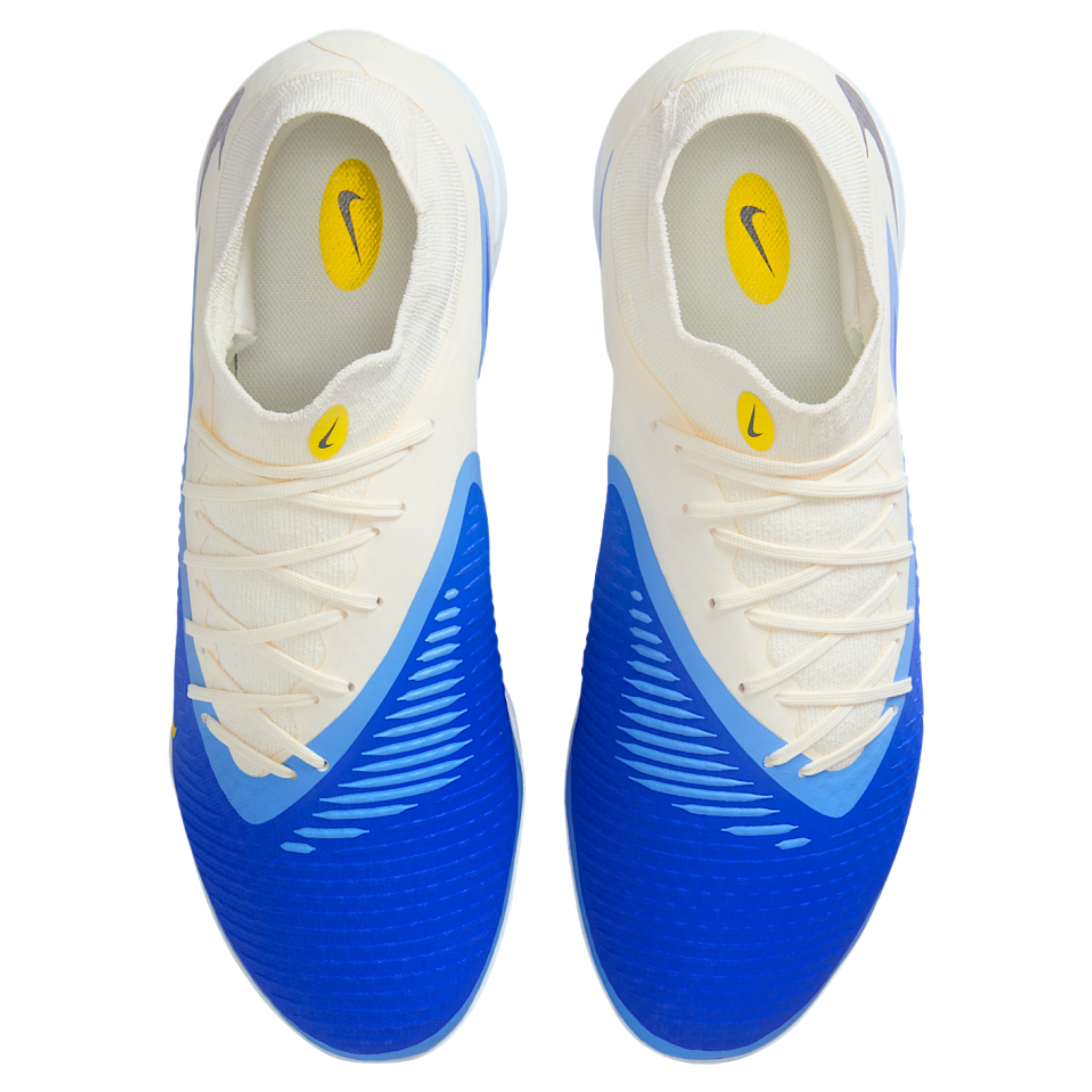 Command the game with the Nike Phantom 6 High Academy TF LV8, designed for precision and creativity on turf. The Racer Blue and Dark Obsidian colorway delivers bold style that stands out on any pitch.