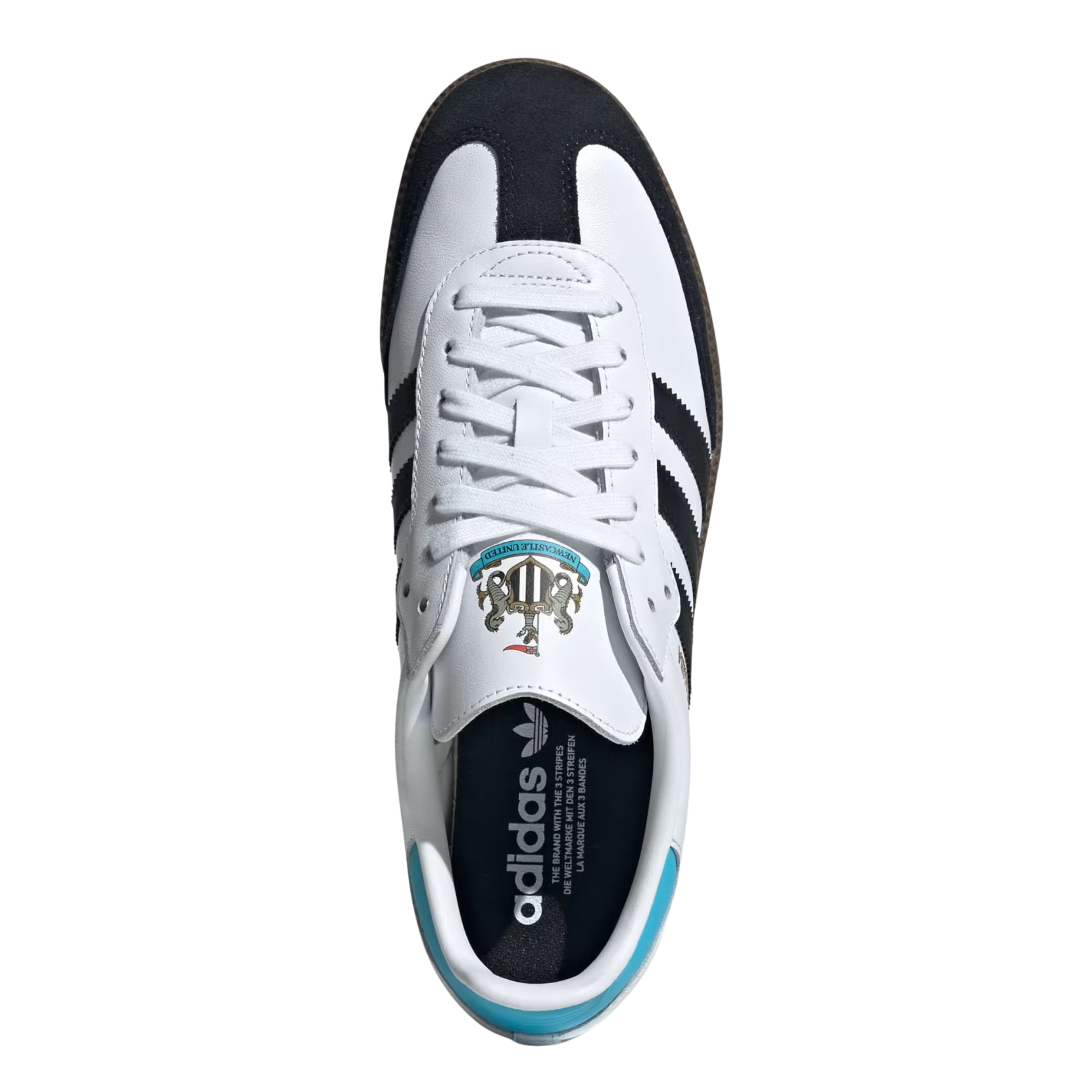 Celebrate your club pride with the Adidas Newcastle United Samba (White/Black/Sky Rush). This timeless streetwear icon gets a fresh twist with Newcastle’s signature colors, blending classic football heritage with modern supporter style.