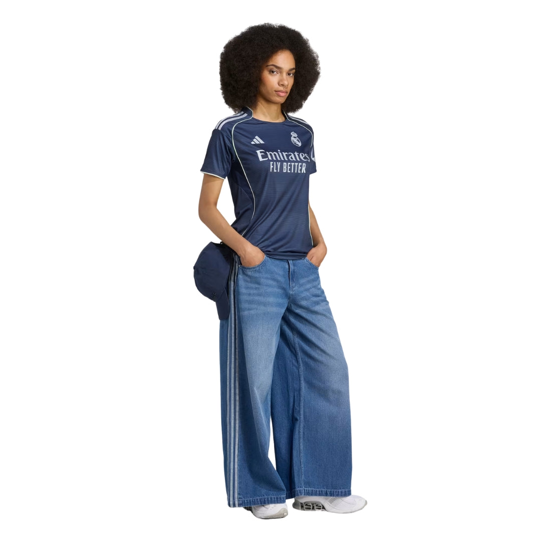 Stand out on away days with the adidas Women's Real Madrid 25/26 Away Jersey in Legend Ink. This sleek and modern design features a dark base with vibrant detailing, celebrating the club’s bold spirit. Engineered for performance and style, the jersey is made with lightweight AEROREADY fabric to manage moisture and ensure all-day comfort. A slim, feminine fit makes it perfect for devoted fans on the move.