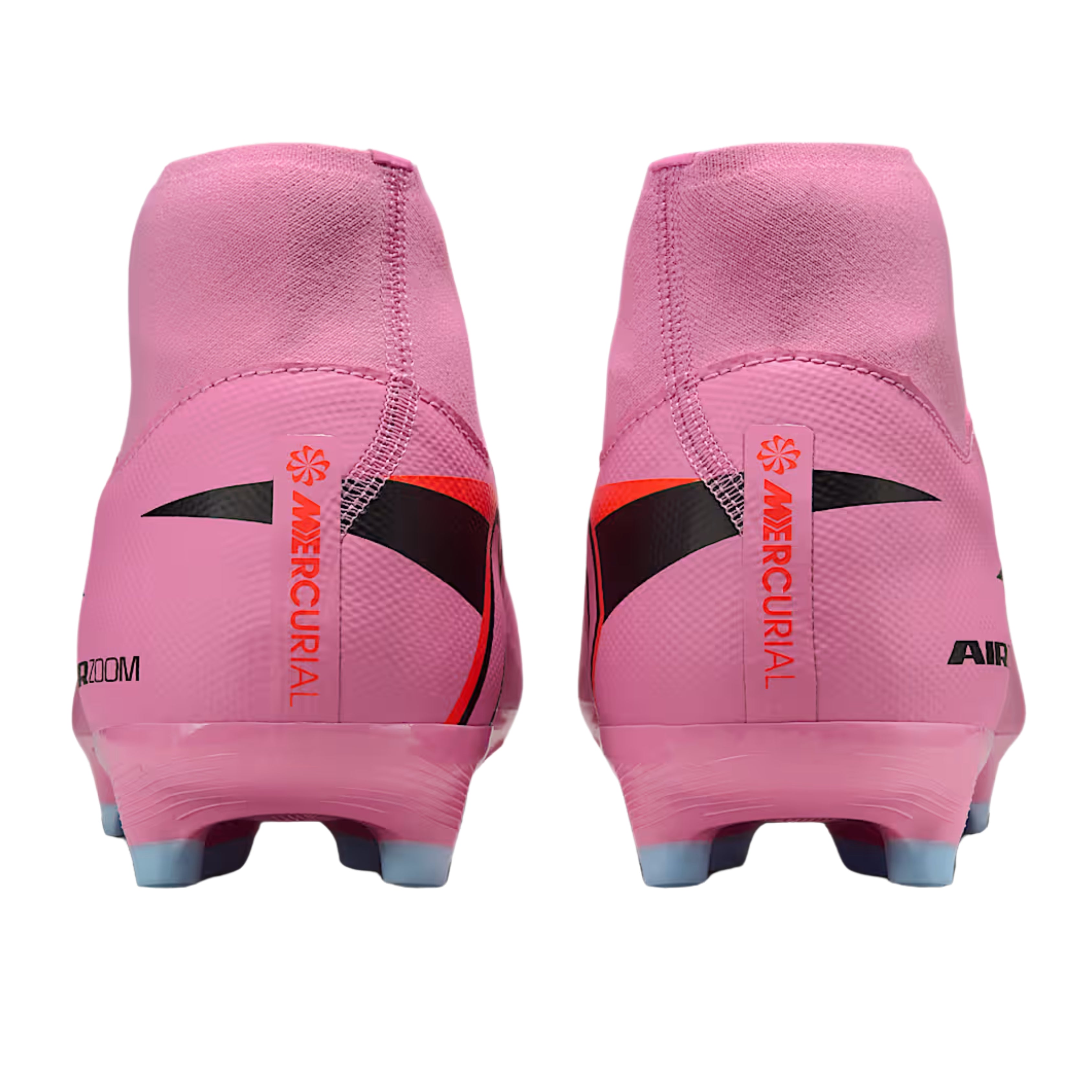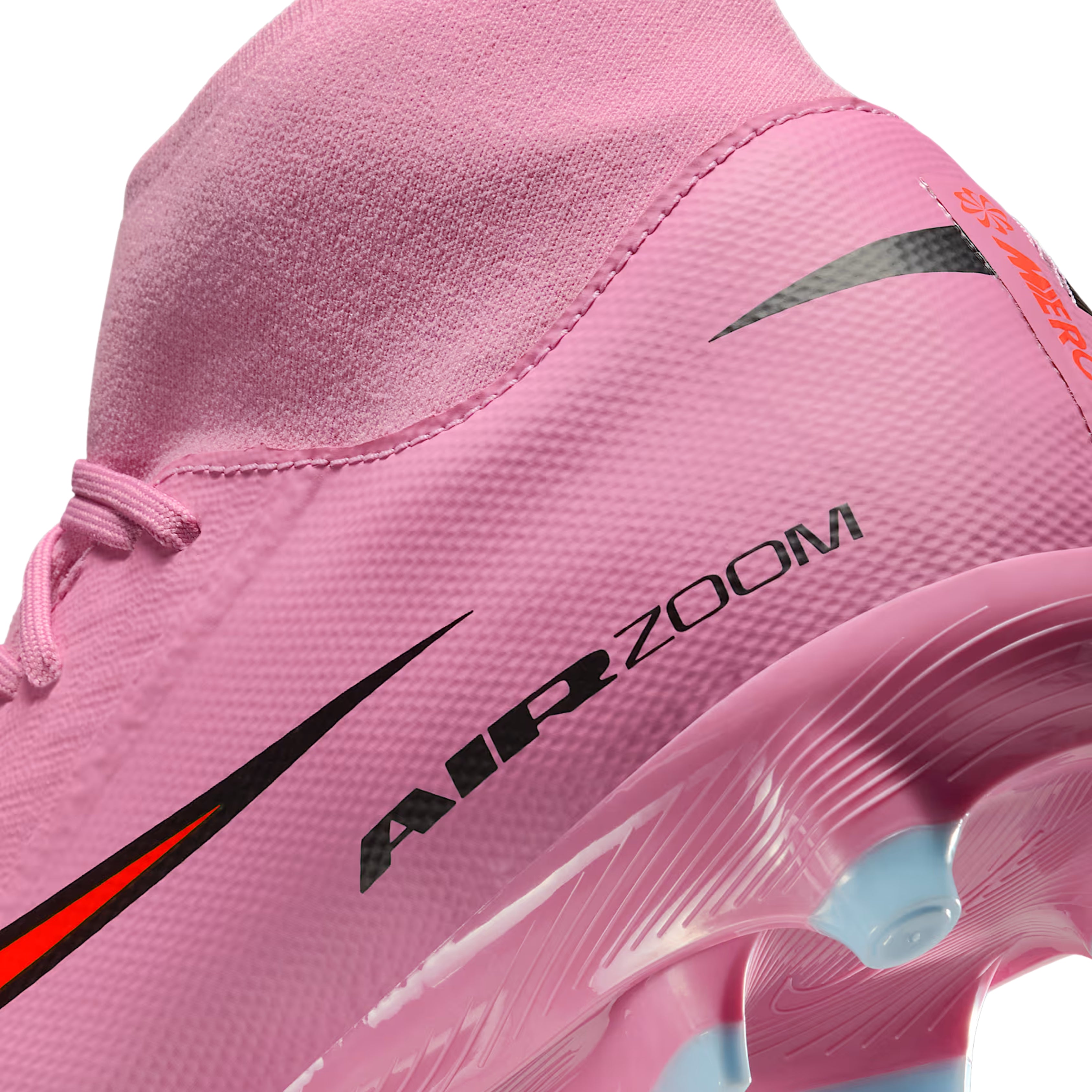 Ignite your speed with the Nike Zoom Superfly 10 Academy FG/MG Soccer Cleats in Magic Flamingo, Black, and Total Crimson. Designed for high-velocity play, these cleats deliver explosive acceleration and sharp traction.