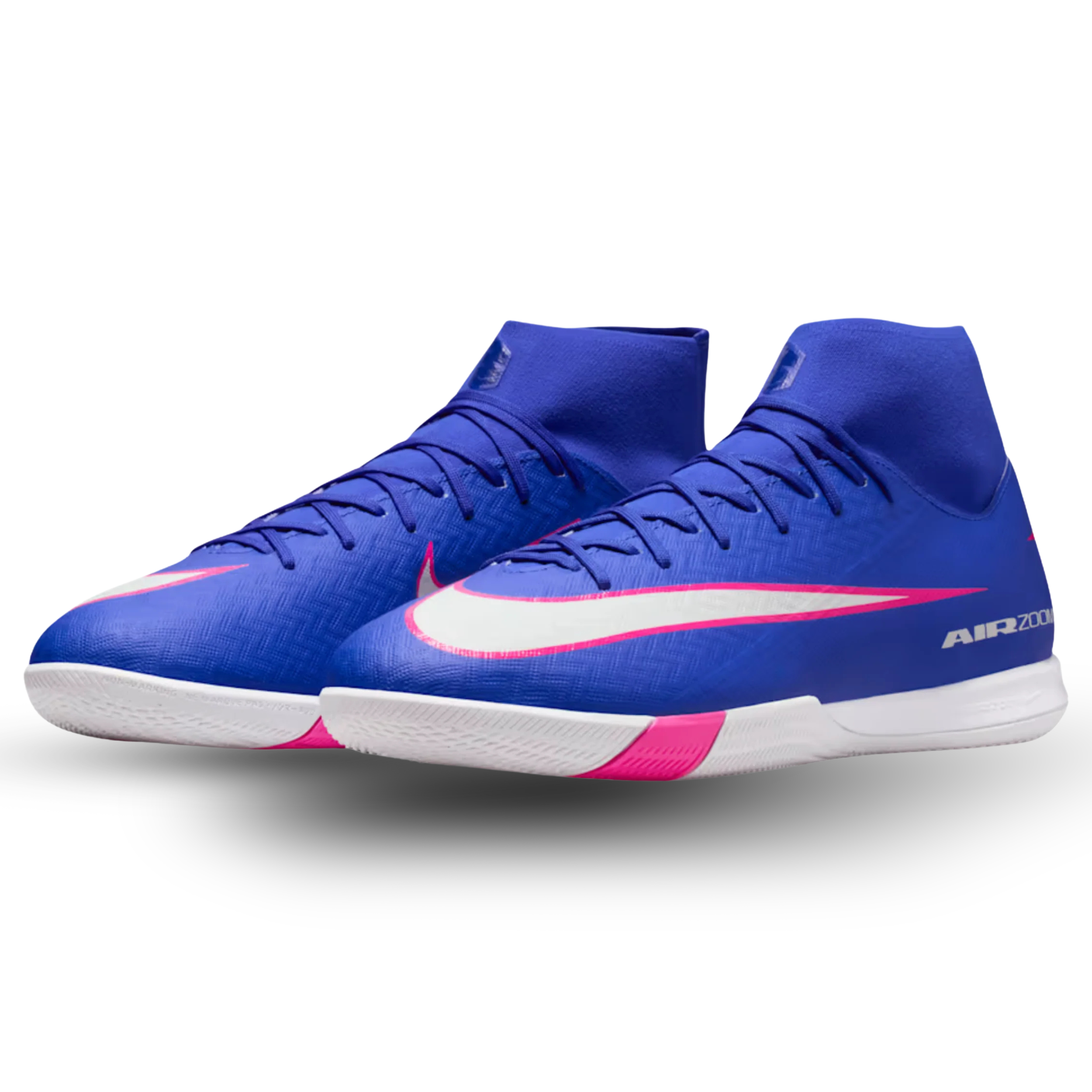 The Nike Zoom Superfly 10 Academy IC is designed for players who rely on speed, agility, and close control in indoor matches. The Racer Blue and White colorway delivers a bold Mercurial look with modern performance.