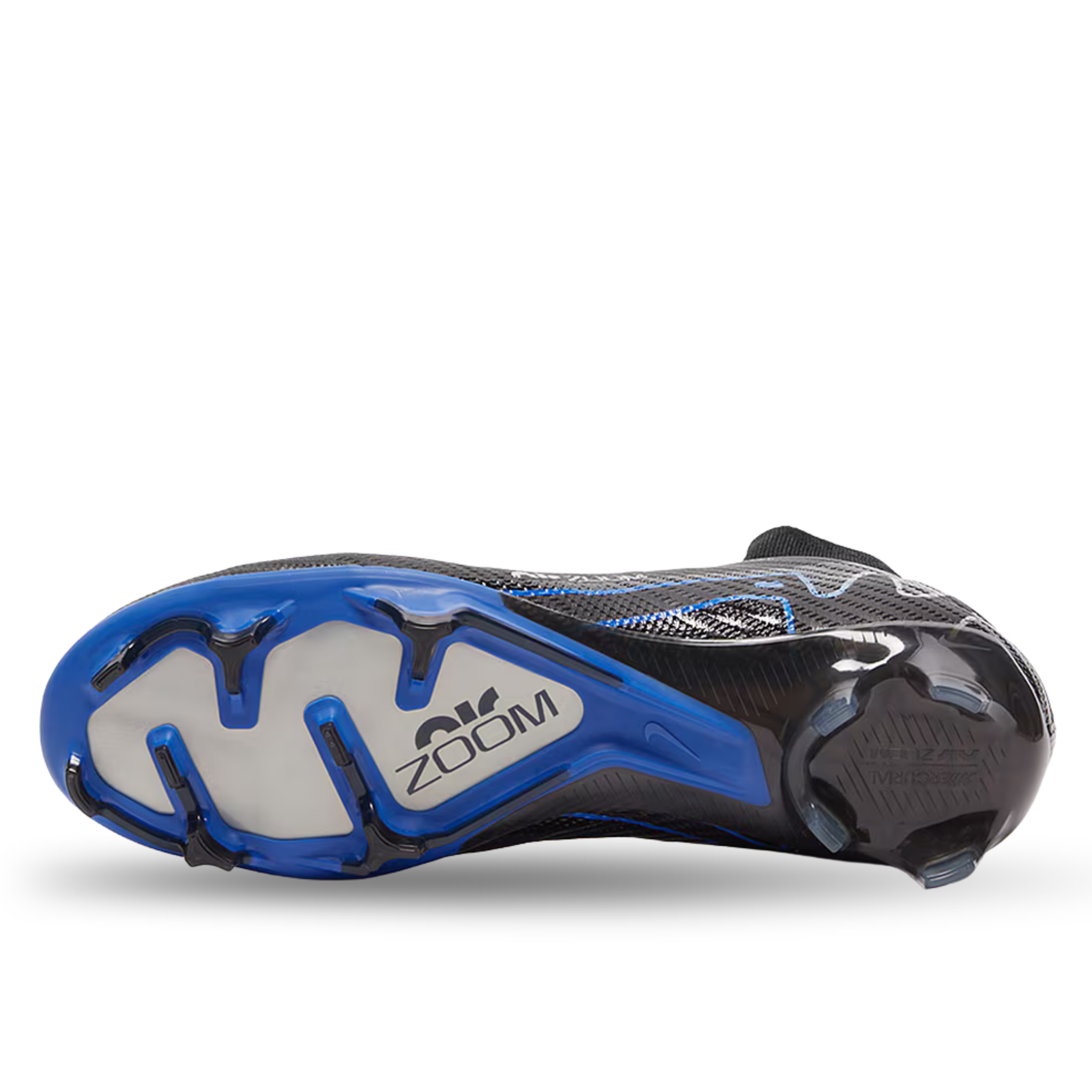 The Mercurial Superfly's Zoom airbag features flex grooves for flexibility and sits directly inside the soleplate, bringing the foot closer to the field for maximum snappy, propulsive energy return.